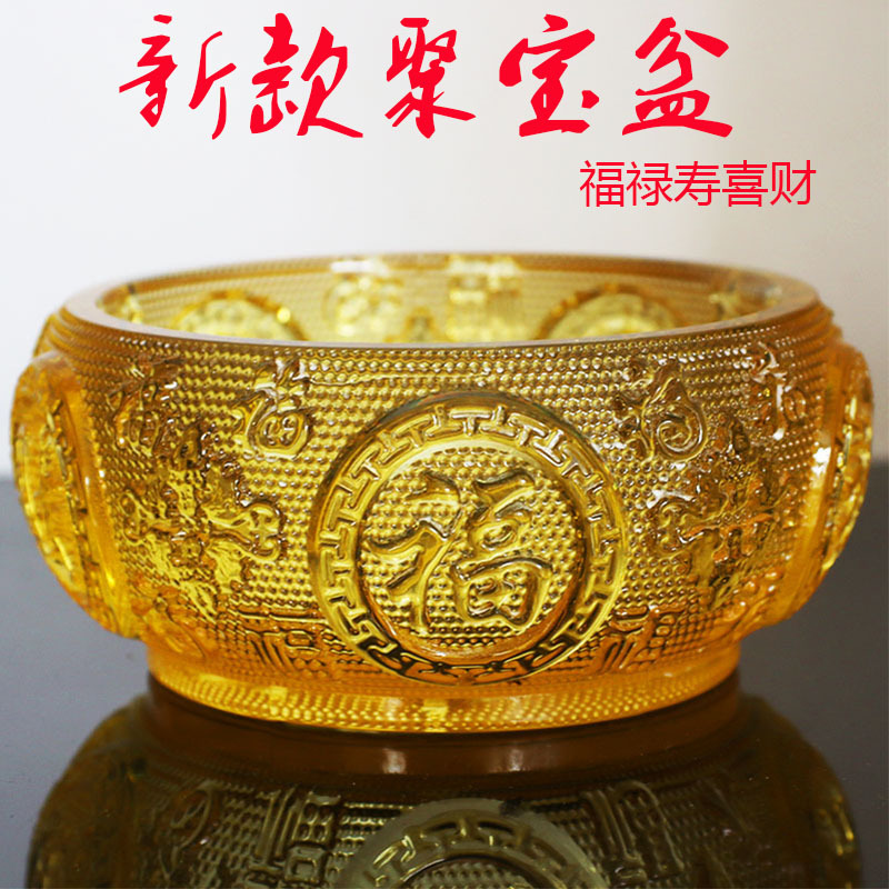 新商品福禄寿喜財五福瑠璃水晶聚宝盆置物元宝客間オフィス開業装飾品
