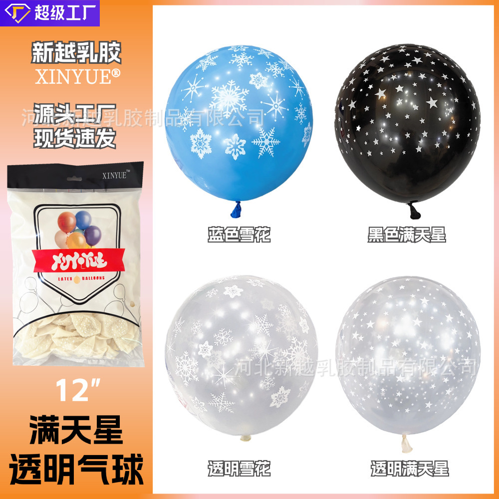 12インチの厚い透明な星のプリントの五角星の風船の結婚式の誕生日のパーティーの配置は雪の風船を飾ります。