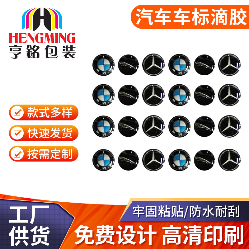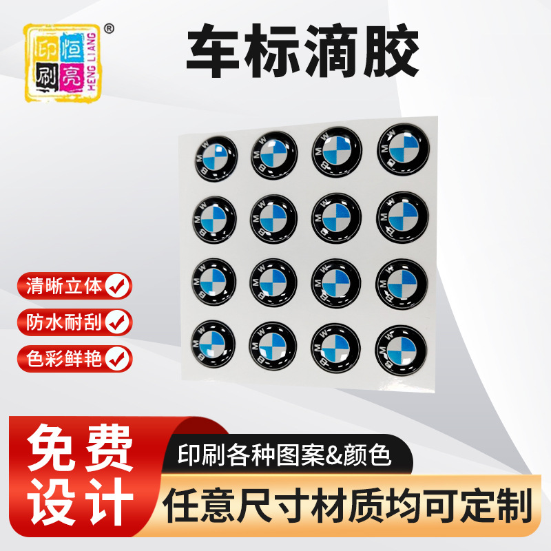 厂家直销供应汽车商标彩色PVC不干胶贴水晶滴塑定制可印logo