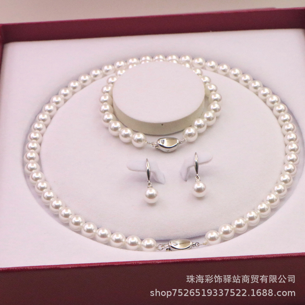 【名称】贝珠(仿贝珠)套装(项链+手链+耳饰)