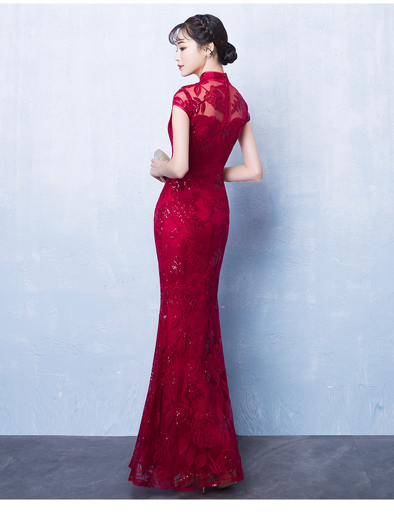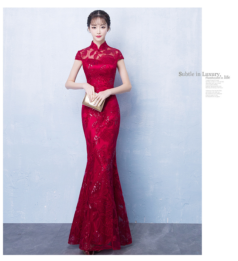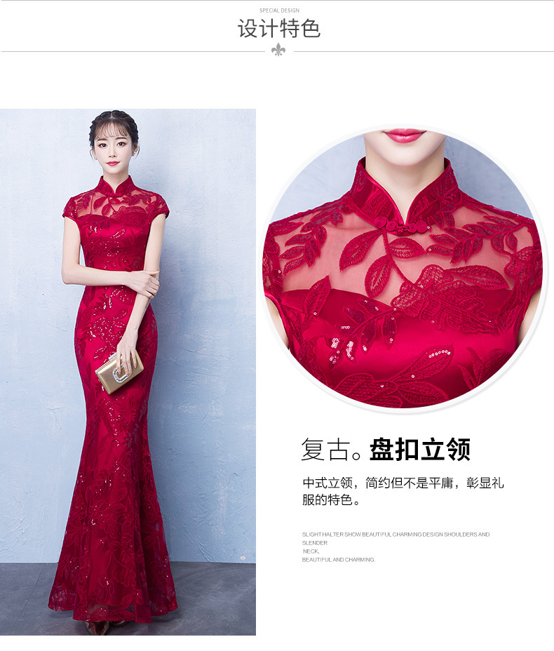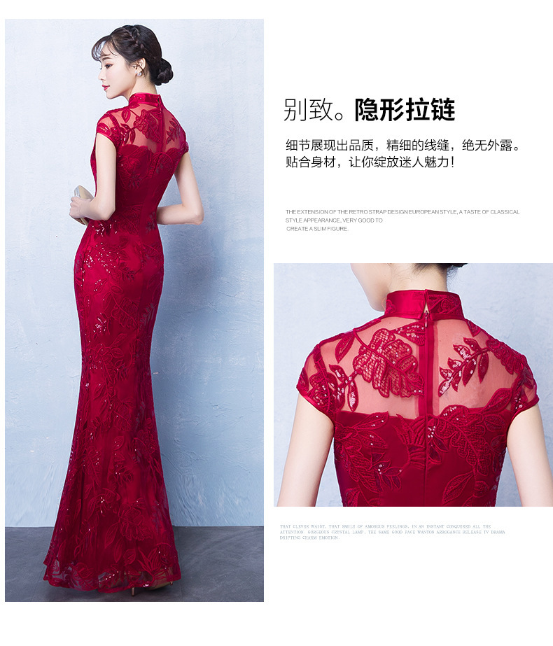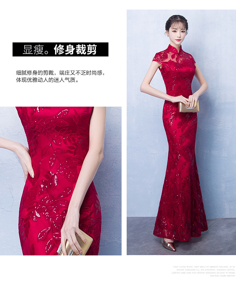 2025年新作赤いロングトーストドレス、花嫁用レトロ改良型スリムフィットチャイナドレス、フィッシュテールウェディングドレス、夏