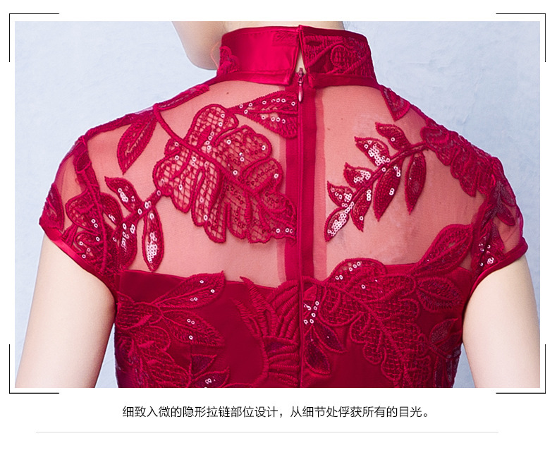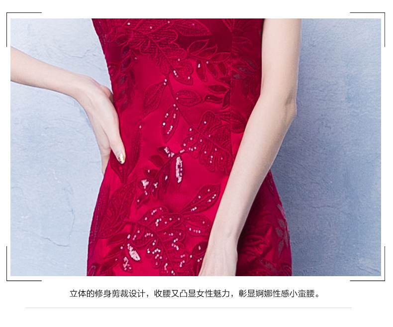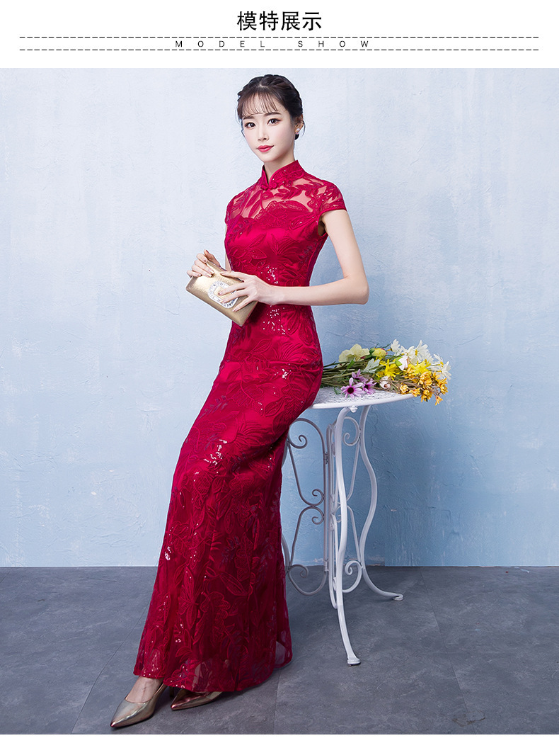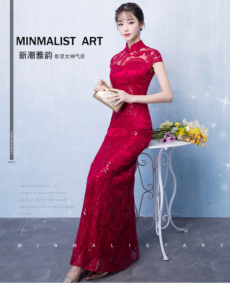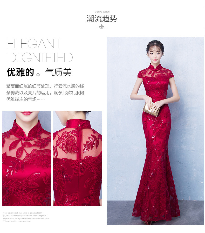 キャットウォークチャイナドレス宴会イブニングドレスフィッシュテール刺繍スパンコールホストモデル痩身チームパフォーマンス服ステージ春