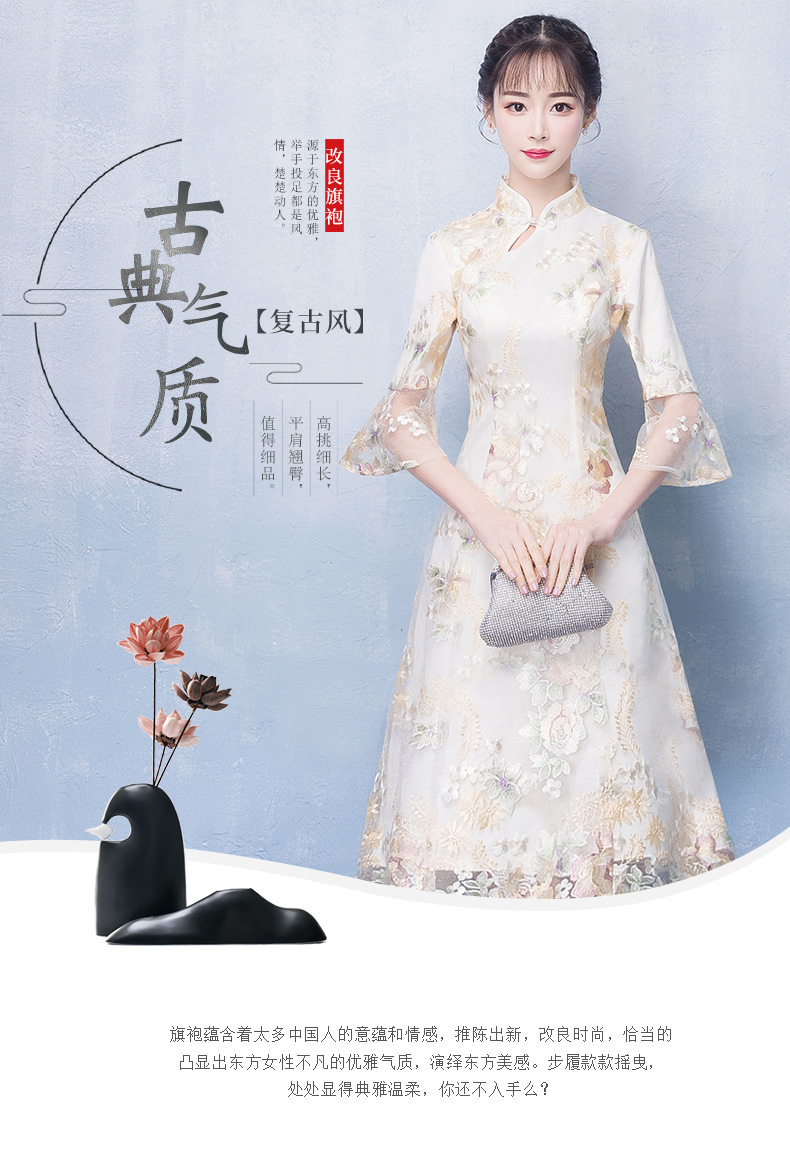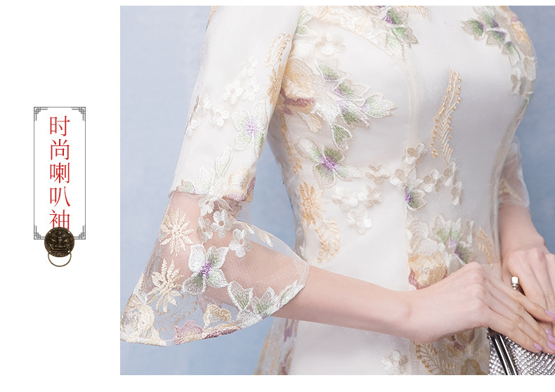 白い魚の尾のチャイナドレスの改良版のワンピースの女性の若いタイプのショーの少女の中国風のイブニングドレスの長いスタイルの気質