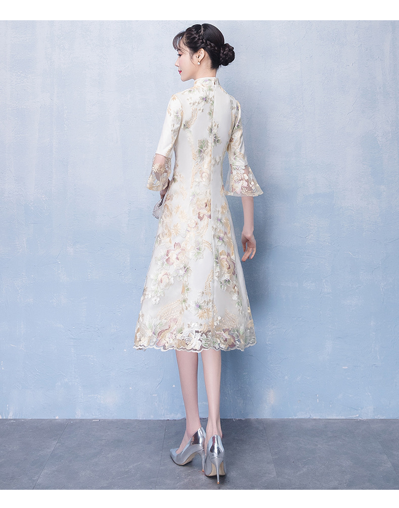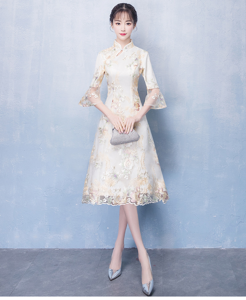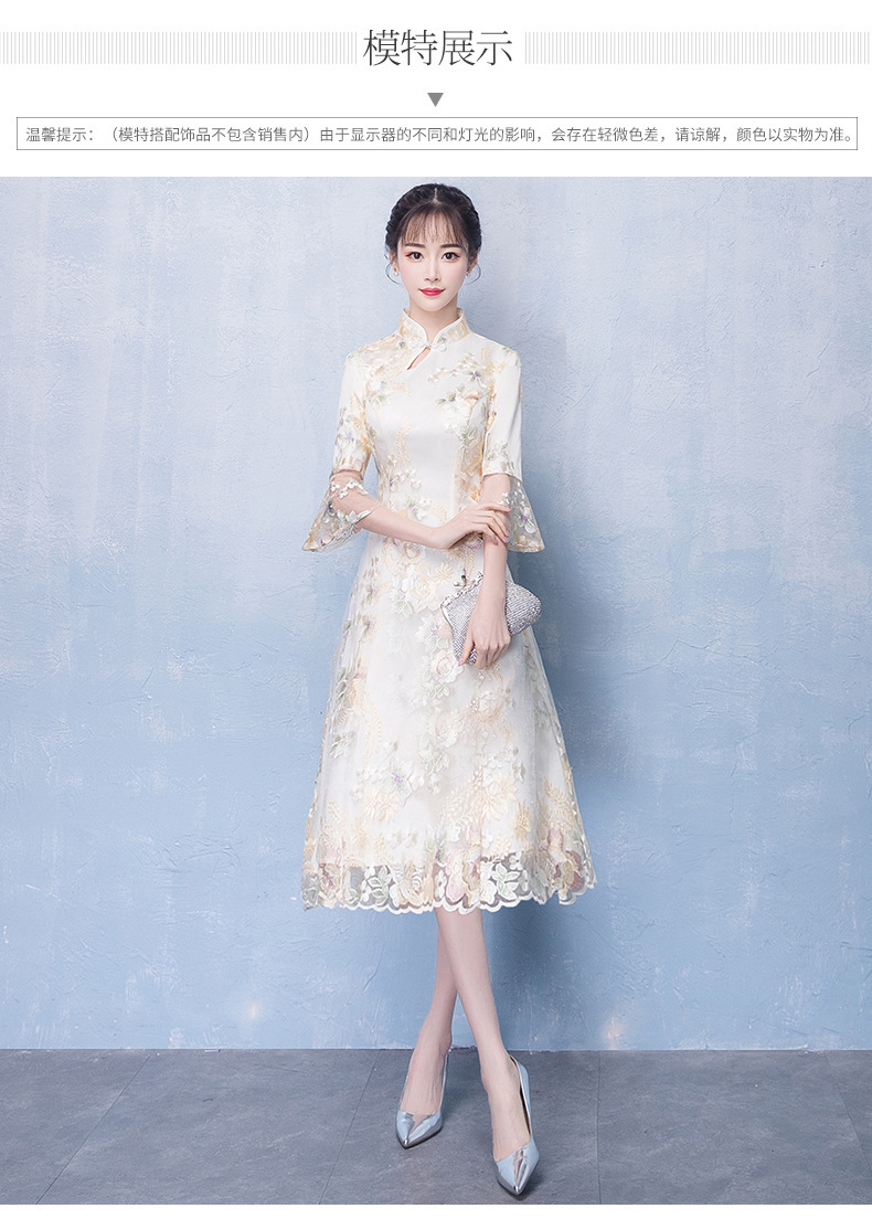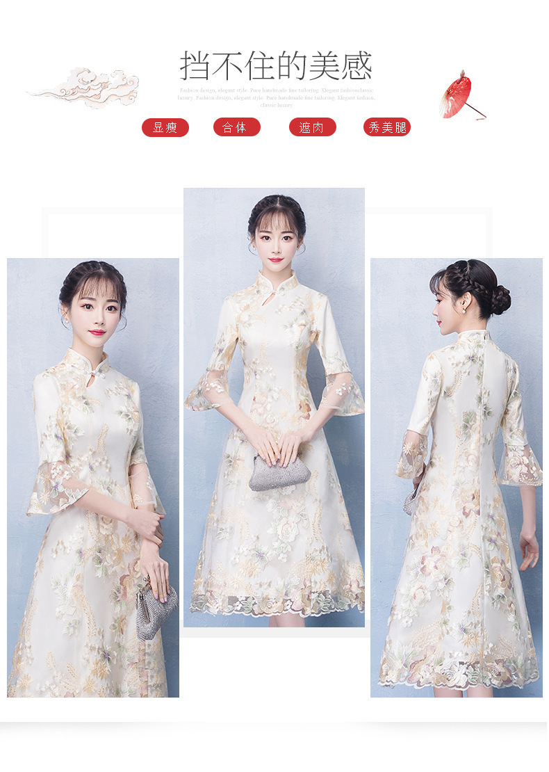 改良版チャイナドレス女性の若いタイプの少女の新しい香りの風現代シャンパン色のチャイナドレス中国風