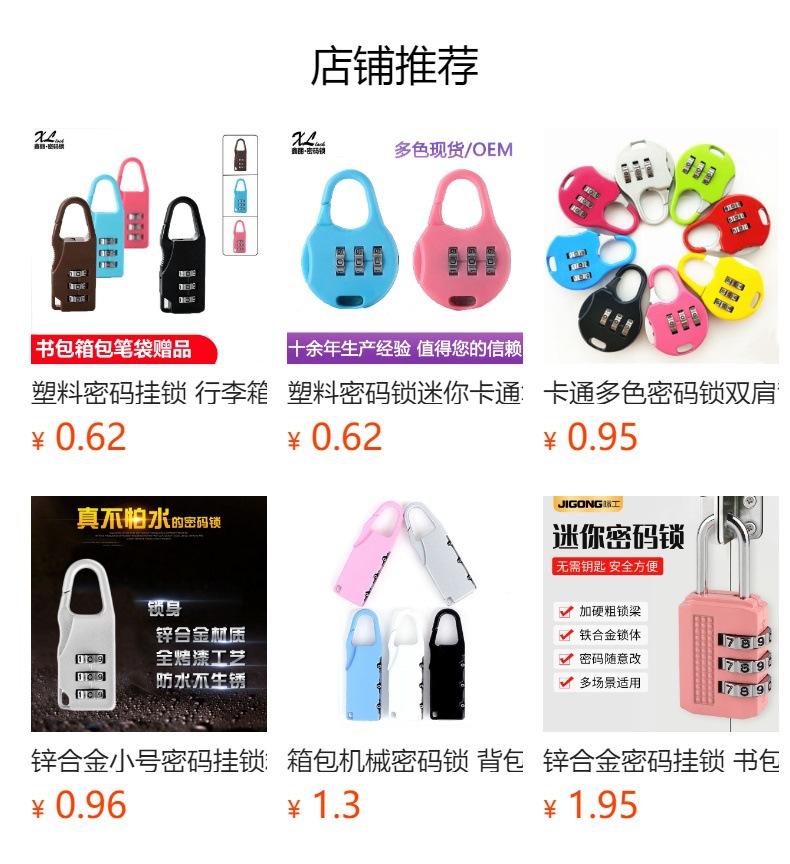 盲盒铁盒木盒密码锁 迷你塑料书包拉链挂锁 搭扣盒子盲盒小挂锁