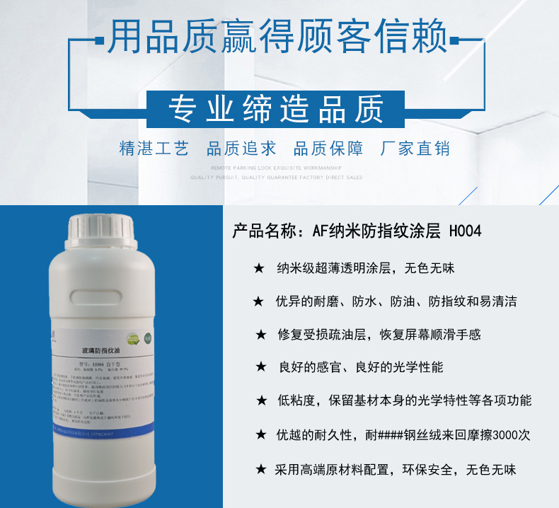 メーカー直供af自乾型指紋防止油高品質環境保護指紋防止コーティング液焼付耐摩耗性