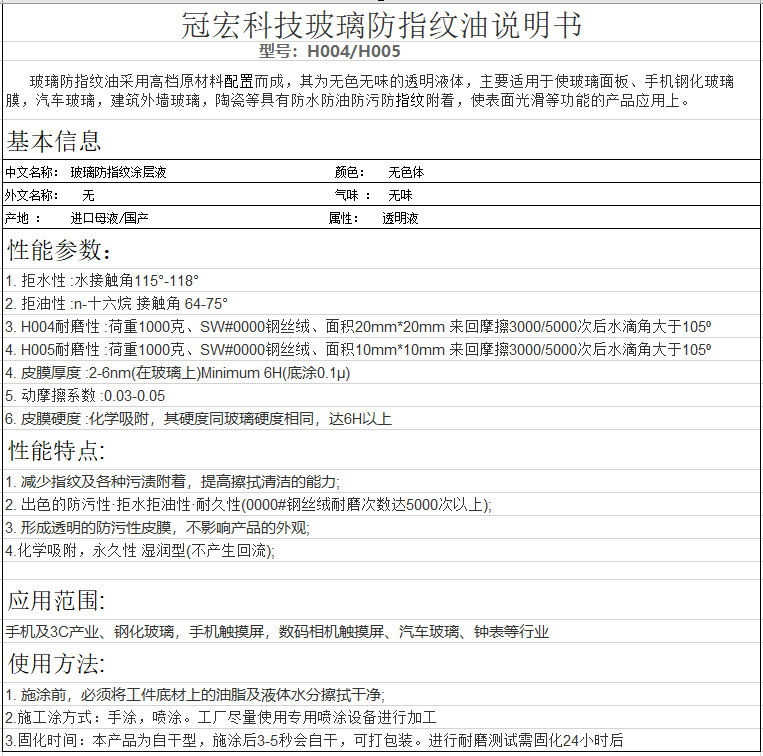規格型番 1kgセルフドライ型指紋防止オイルH004 (コストパフォーマンスが高い),1kg強化版自己乾燥型指紋防止油H005 (より滑らかで、より持続的),1KG ダイキン高温ベーキング指紋防止オイル