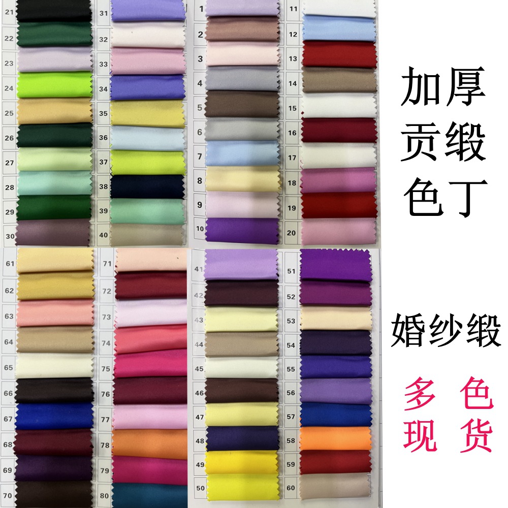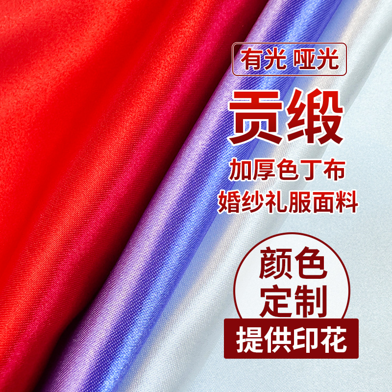 有光哑光厚色丁全涤贡缎布料染色印花上浆婚纱缎面礼服舞台表演布