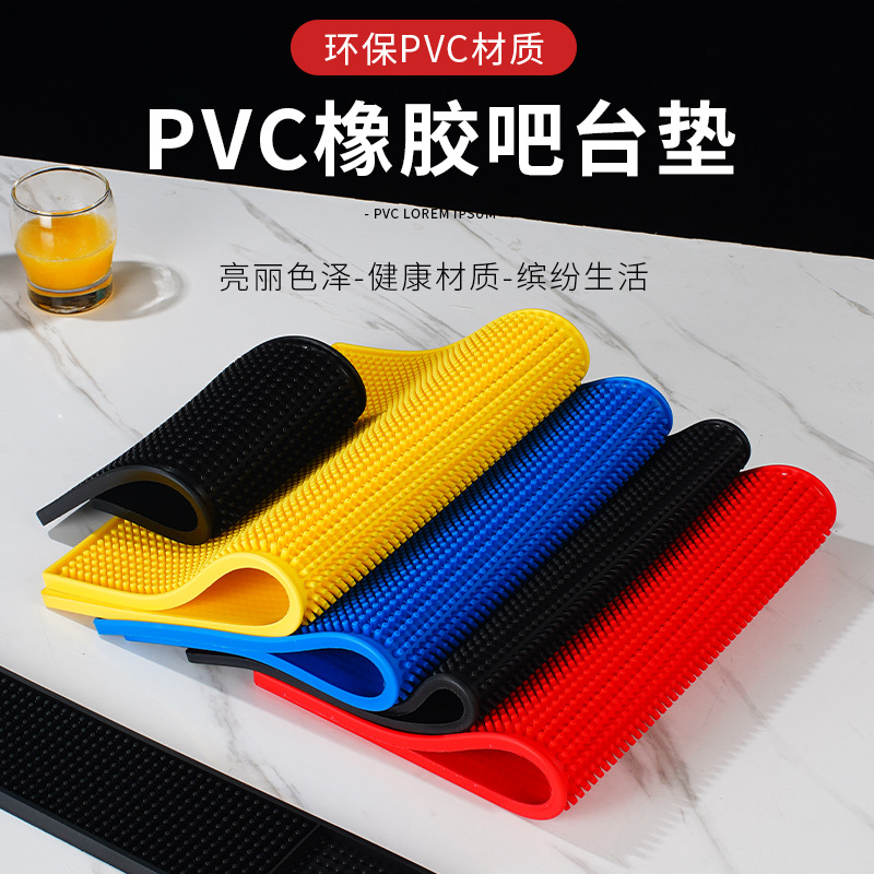 Pvcコースター長方形厚手ゴムバーマット黒色滑り止め隔水マットバーマット卸売り