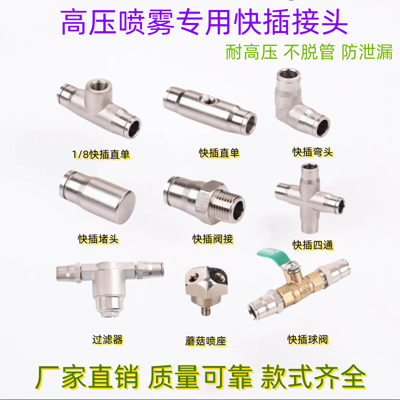 9.52高圧霧化部品ノズル噴霧クイック挿入直接エルボ三方プラグ紡績加湿打薬シャワー