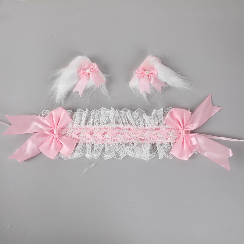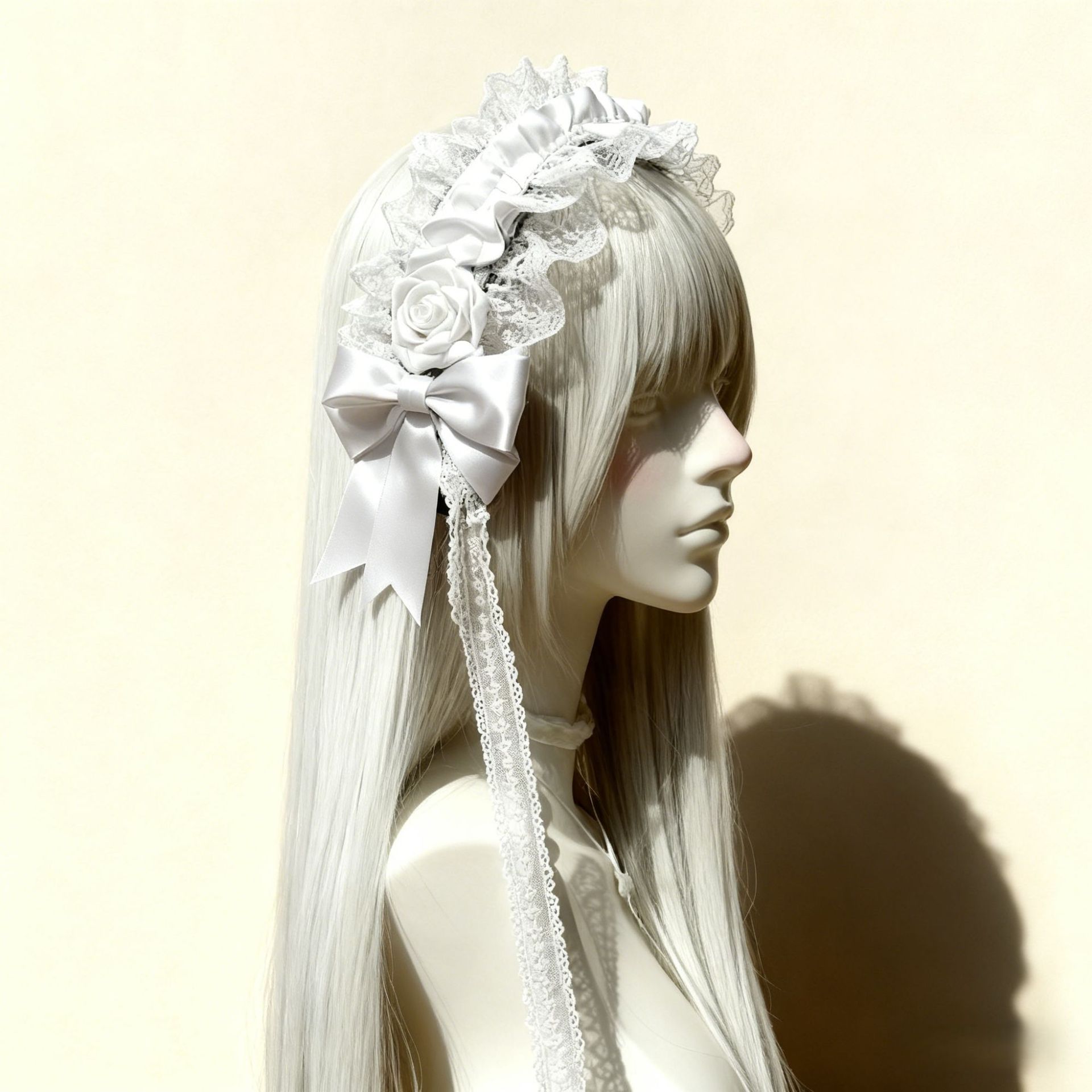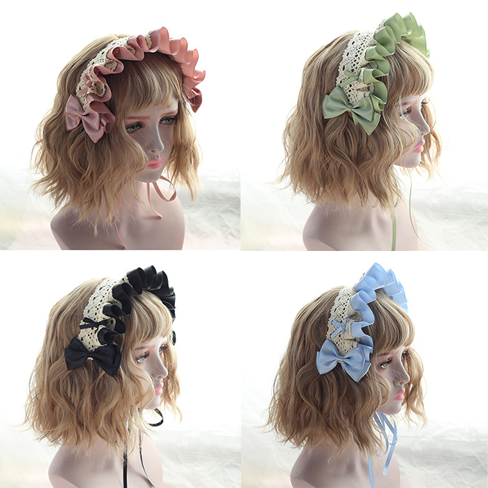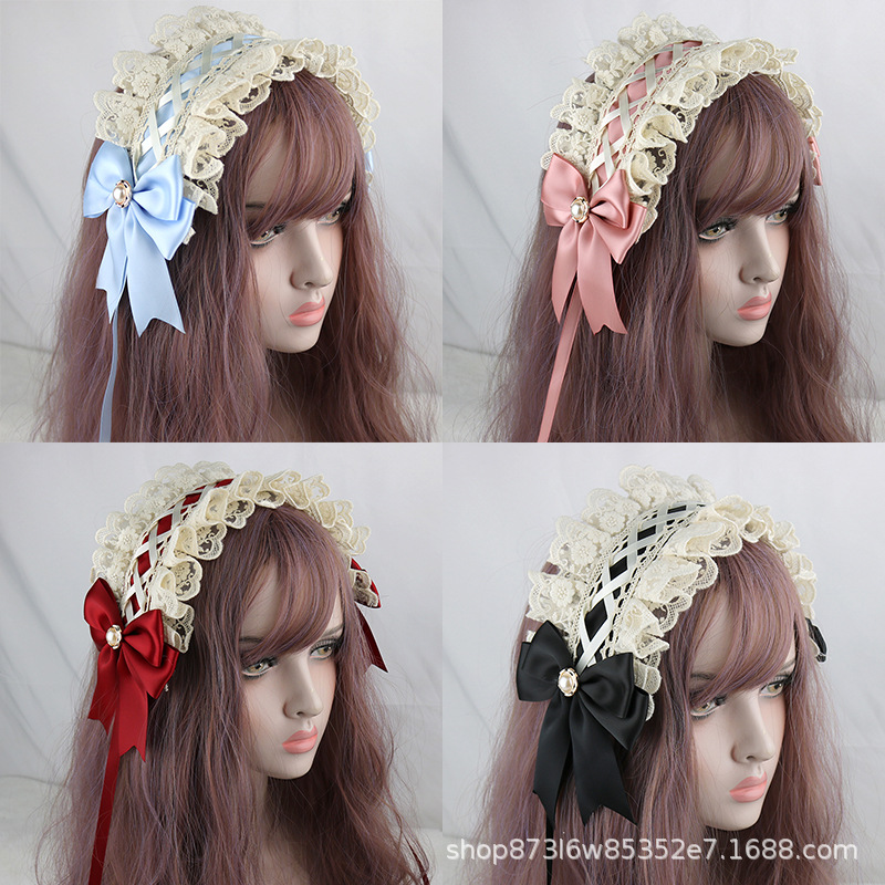发带蕾丝最宽处为7cm,蝴蝶结宽为9cm,两边丝带各长约34cm,内侧有黑色小夹子,可以固定头发。