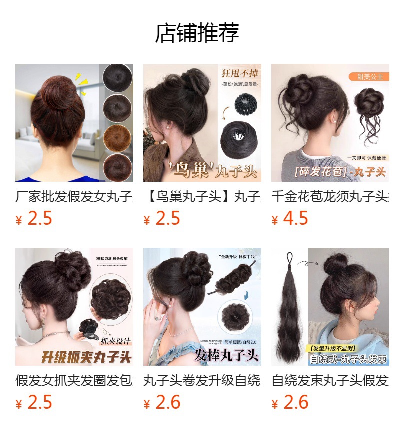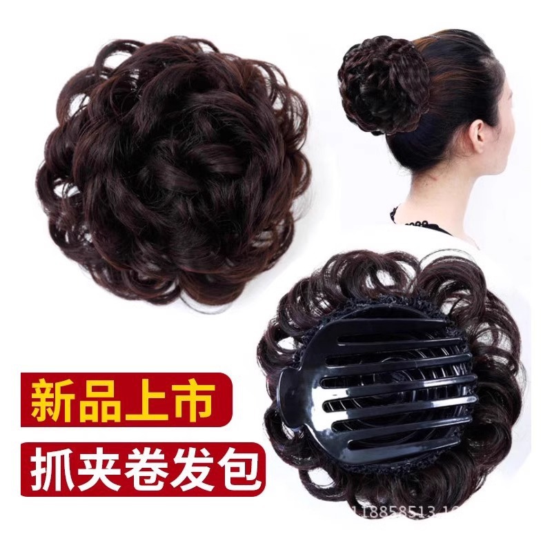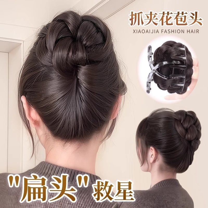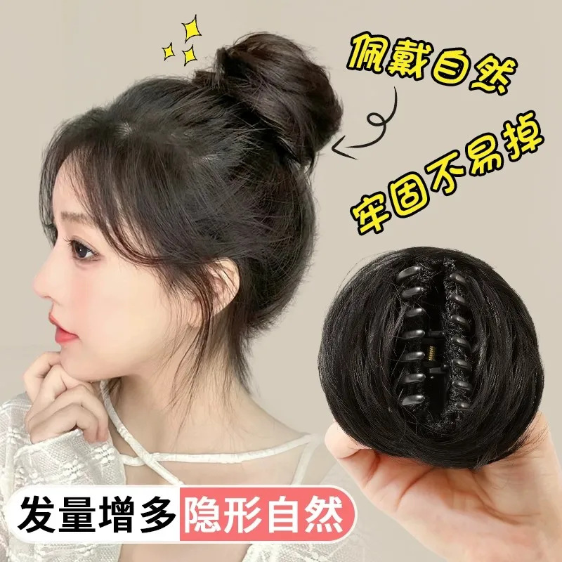 鸿秀优选-丸子头假发女抓夹低扎氛围感花苞头盘发蓬松后脑勺发包