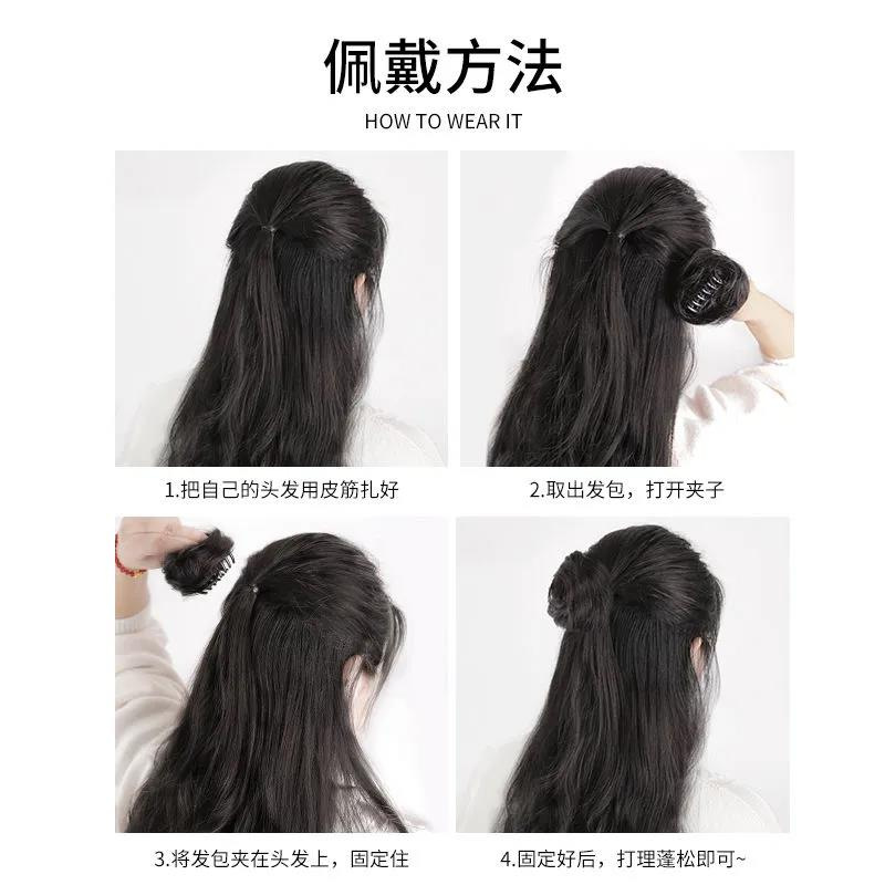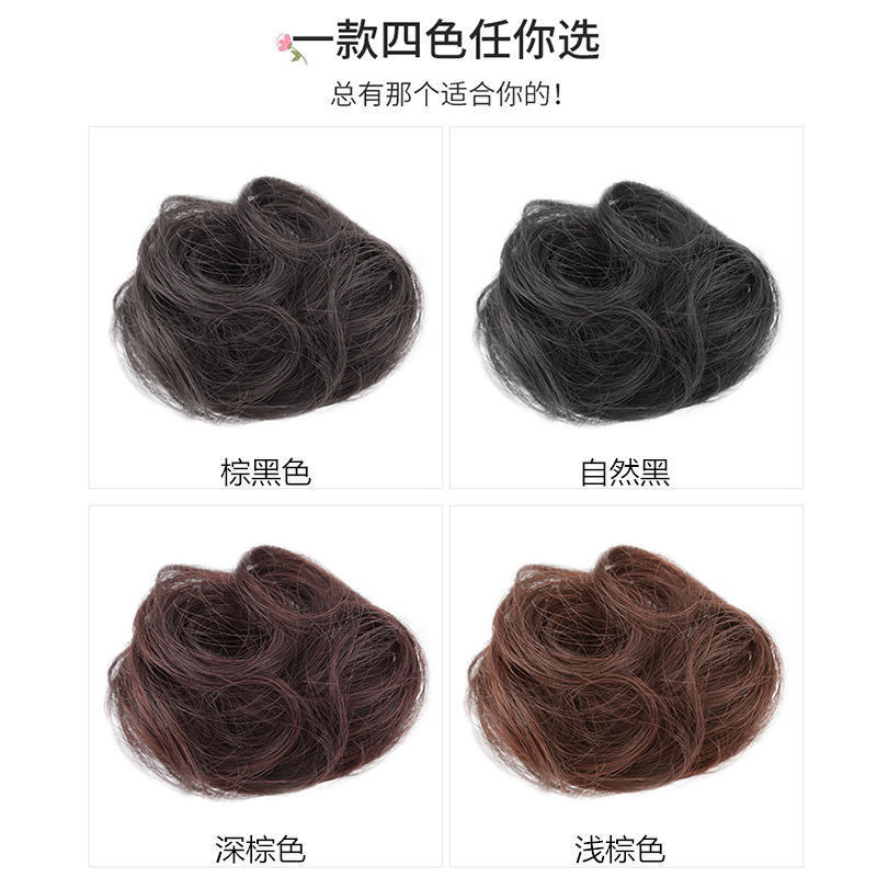 丸子ヘアウィッグ 女性用 花包みヘアウィッグ 本物の髪ウィッグ ヘアゴム ドーナツヘア ふんわり自然な偽丸子ヘアツール ヘアクリップ付き