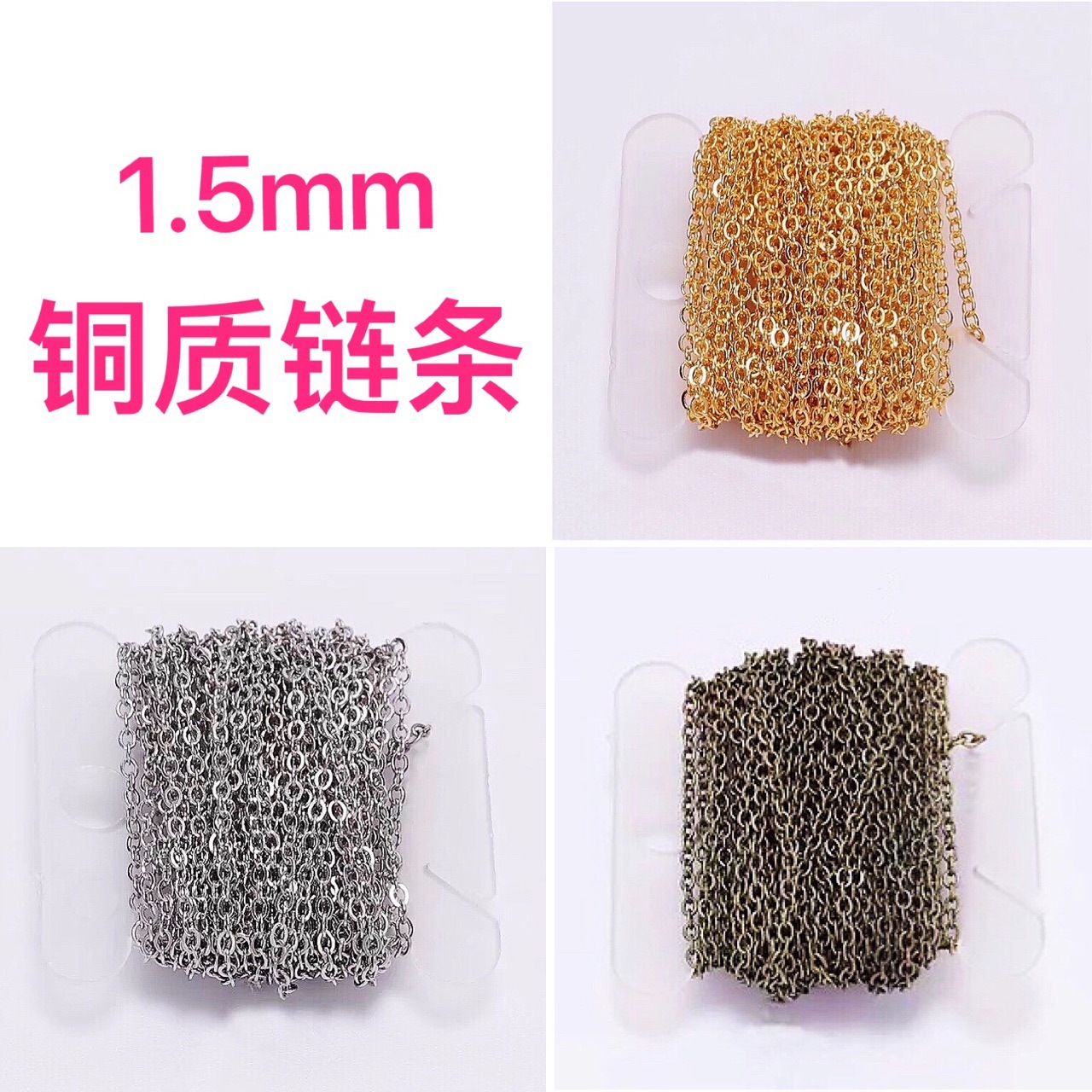 1.5mmの細いチェーンbjdの小さい布の子供の服のアクセサリの銅の人形のチェーンの金属ob11の子供はチェーンを包みます。