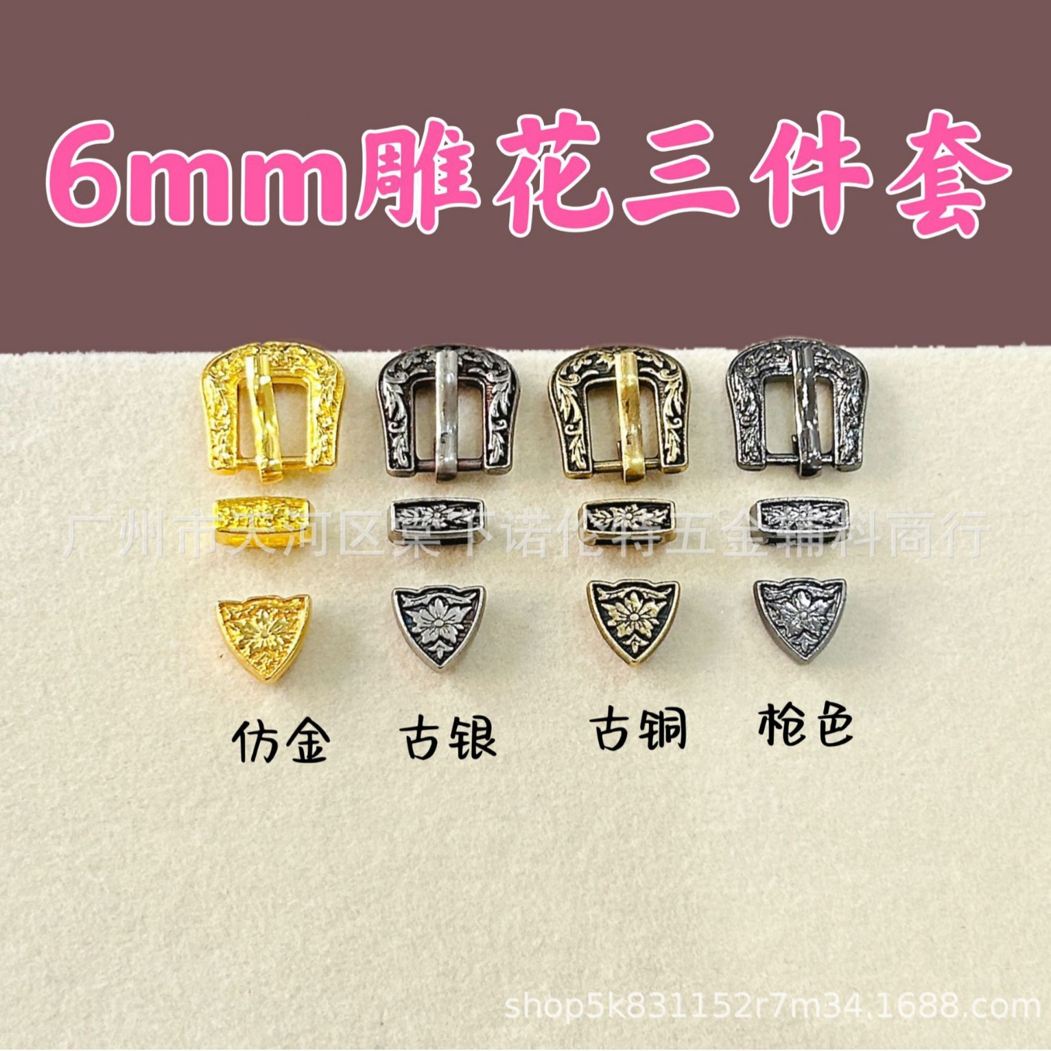 6mm雕花皮带扣迷你合金针扣三件套BJD四分娃衣扣子皮带扣装饰扣头