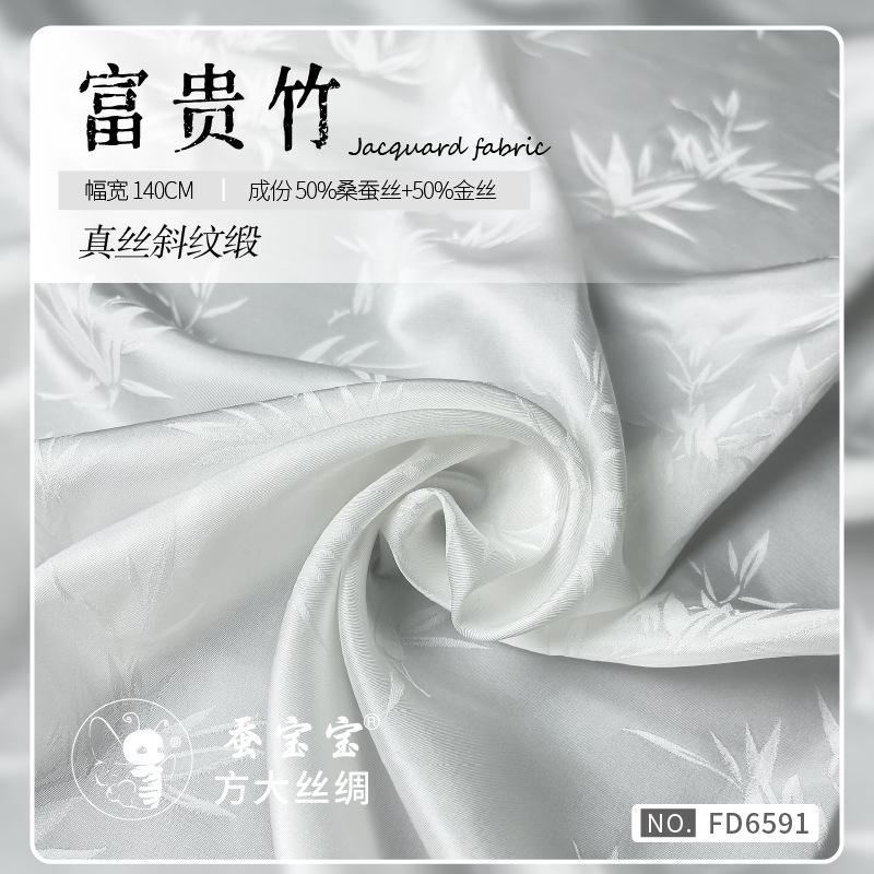 蚕丝布料真丝提花富贵竹纹2026新品19姆米140CM连衣裙中式FD6591