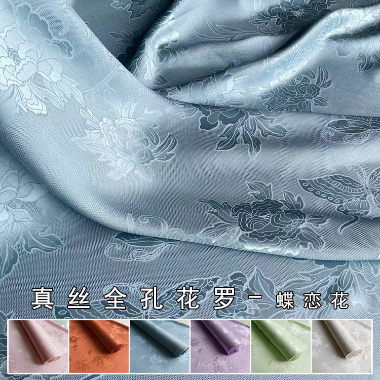 蝶劇の牡丹の全穴の透かし彫りのシルクの花の羅の布地は肌の桑の絹糸のジャカードのシルクの漢服のチャイナドレスの布地にキスします。
