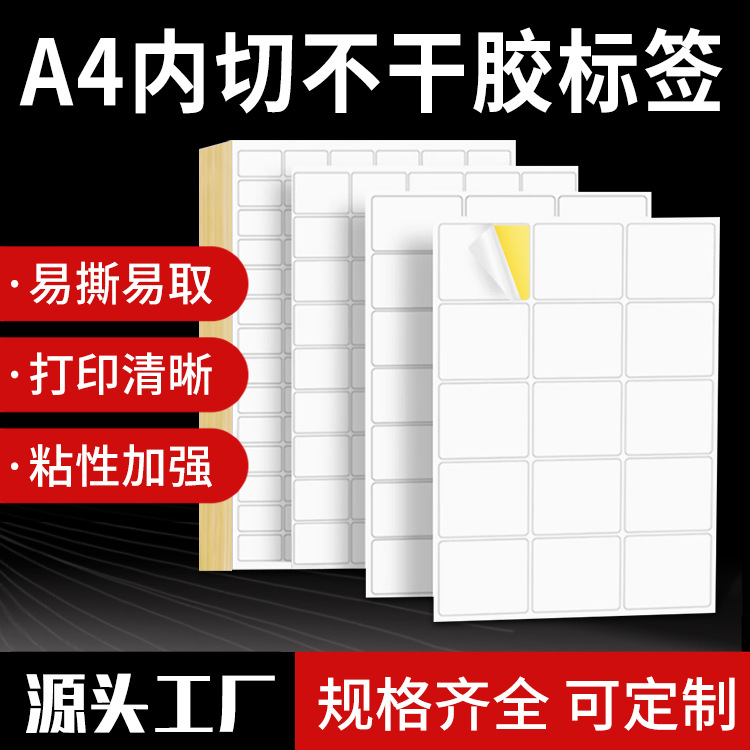 A4内切不乾性ラベル紙ステッカー、インクジェット・レーザー印刷対応、分割可能、越境用ラベル、A4ラベル印刷用紙