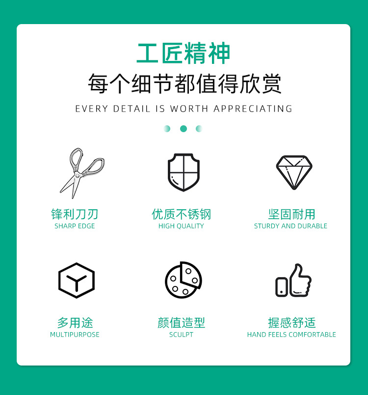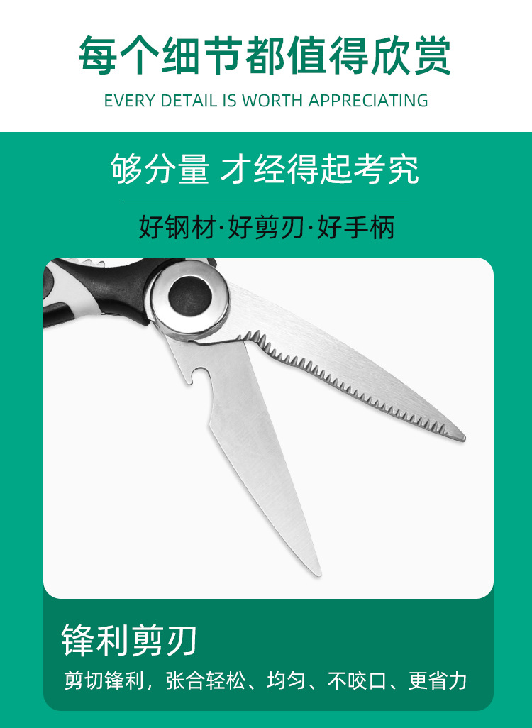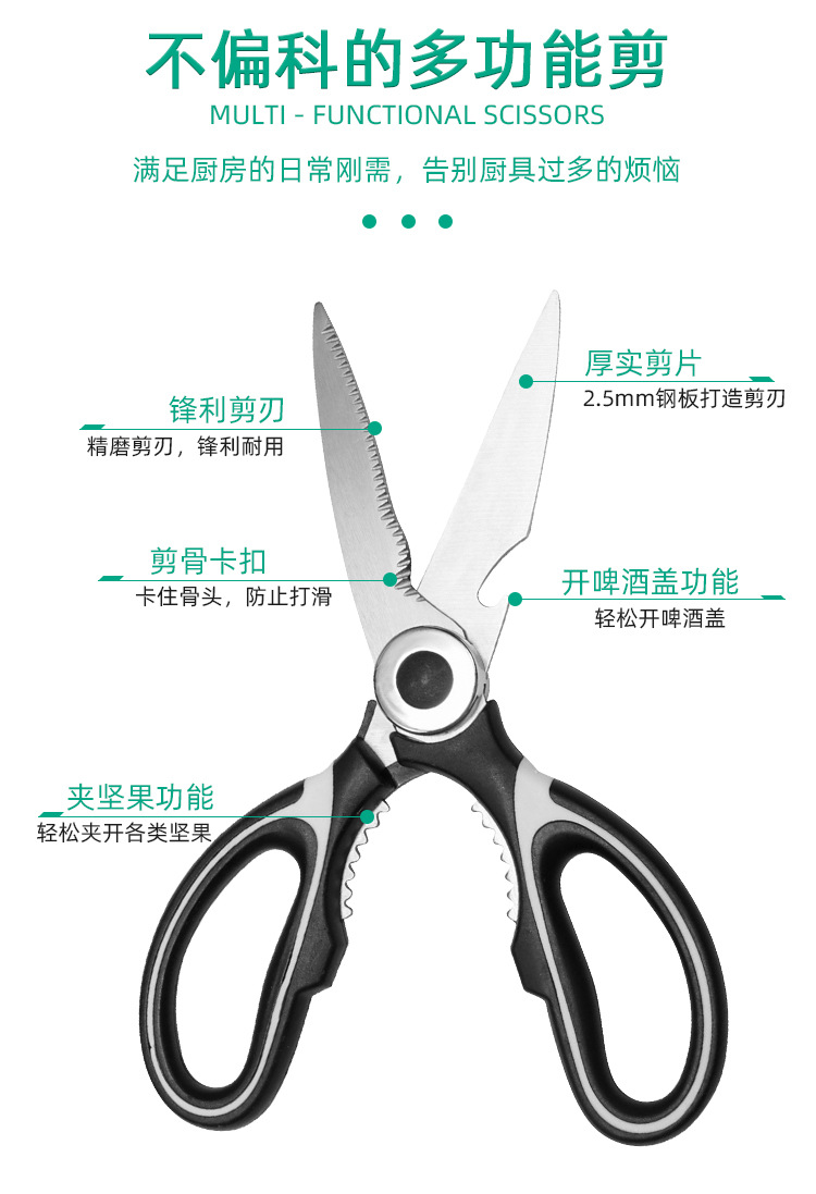 德国工艺不锈钢家用剪刀强力厨房剪肉多功能裁缝剪学生骨头手工剪