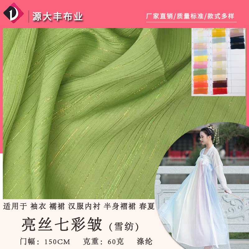 漢服の生地の七色の条の全ポリエステルの布帛の明るい糸のシフォンのしわの漢服の大きい袖のシャツのメンズのスカートのワンピースの生地