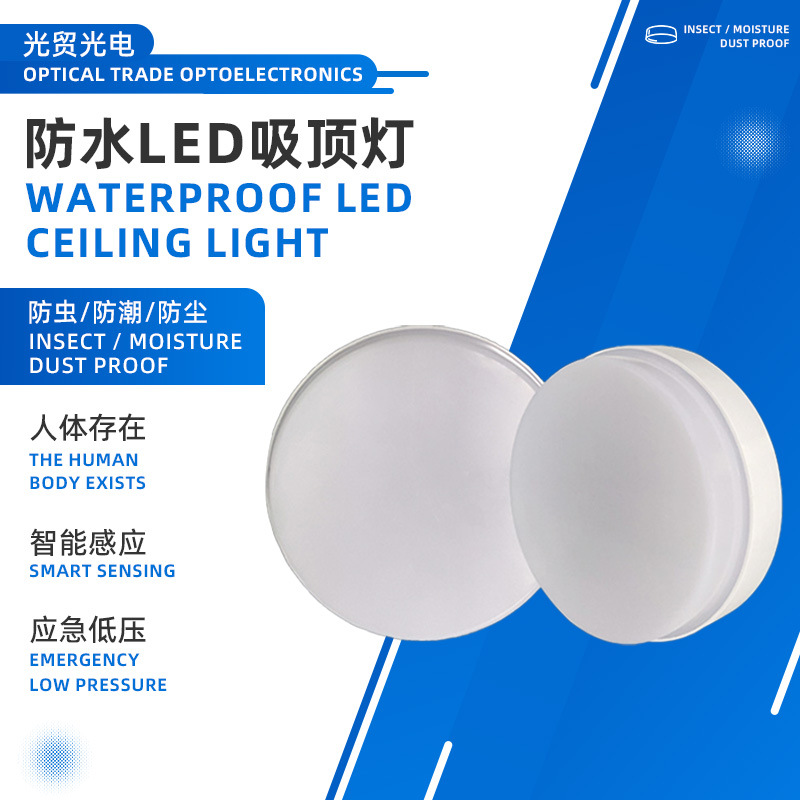 这款吸顶灯主要应用在阳台、过道、卫生间、厨房、楼梯等地方。主要优点是小灯体,高亮度,一体设计蚊虫,雾水,灰尘不易进入