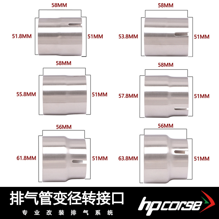 オートバイ改造排気管51回転52 54 56 58 62 64mmテール変径ポート回転口を適用する