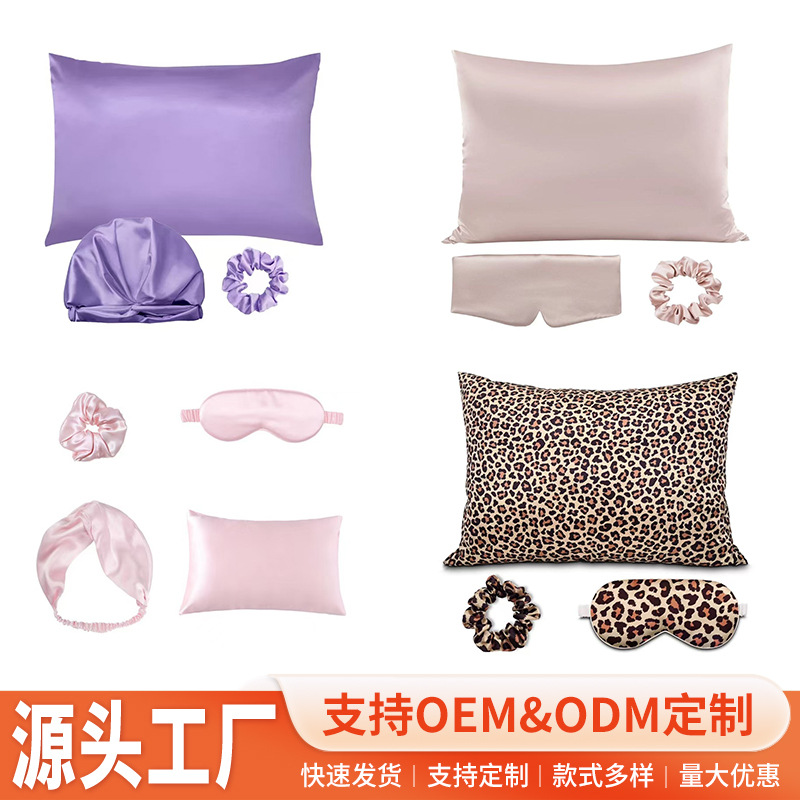 外国貿易用シルク風3点セット 桑蚕シルク風サテンシルク風アイスシルク枕カバー 睡眠用アイマスク シルク風ヘアゴムセット