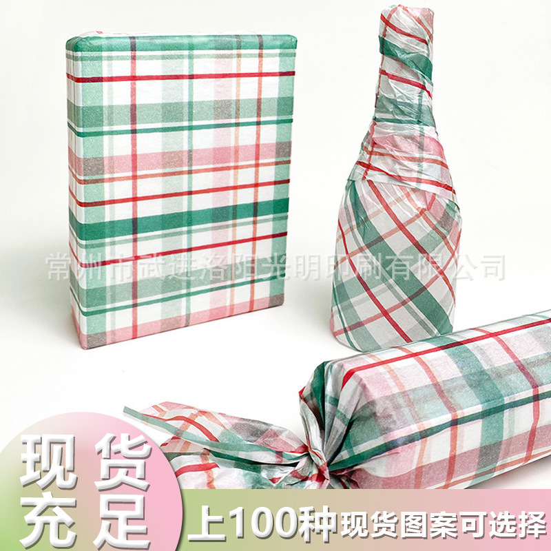 2025年新款圣诞包装纸彩色红绿格纹雪梨纸礼物内跨境折叠打包薄纸