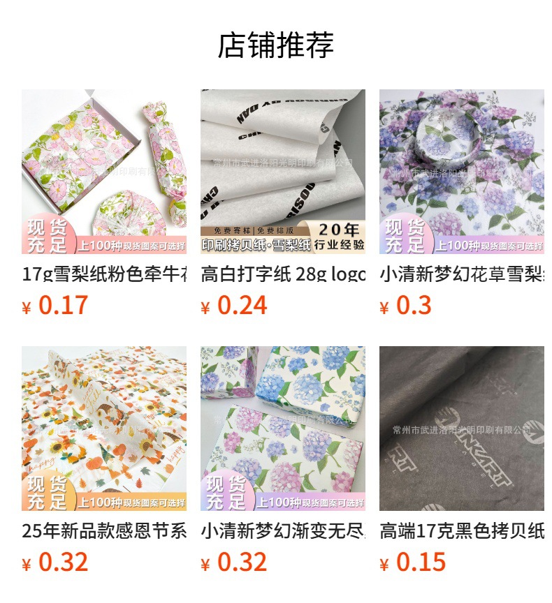 印刷されたロゴコピー紙ギフトセラミック包装紙落下防止ギフトボックス衣類シール紙ブランド薄いページ紙