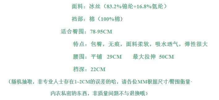【90-130斤】2251快適で弾力性のある # シンプルなお尻氷糸文字中腰女子下着