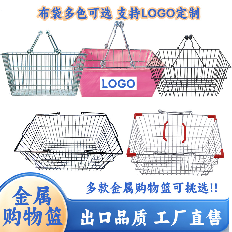 鉄芸金属ショッピングバスケットスーパー便利店舗ショッピングバスケット防錆メッキクロム卸売り精品手提げバスケット枠