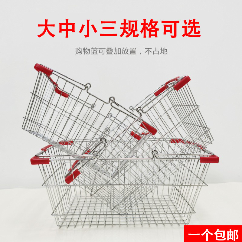 金属购物篮超市不锈钢色电镀铁线篮大中小号化妆品药店收纳手提篮