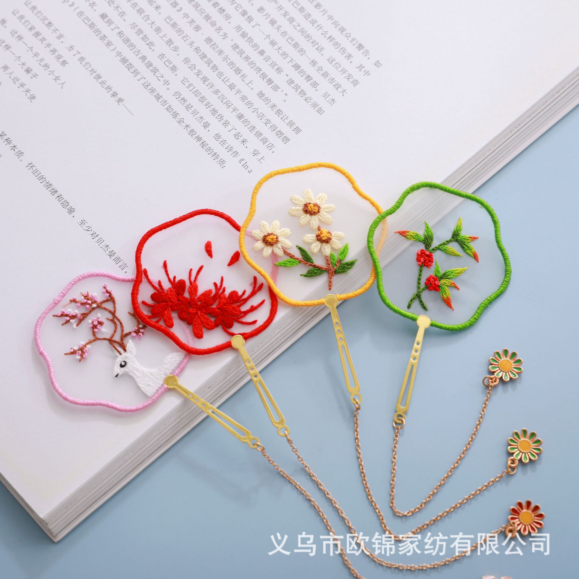 心意书签刺绣套件苏绣手工DIY材料包古风创意团扇书签送礼物自绣
