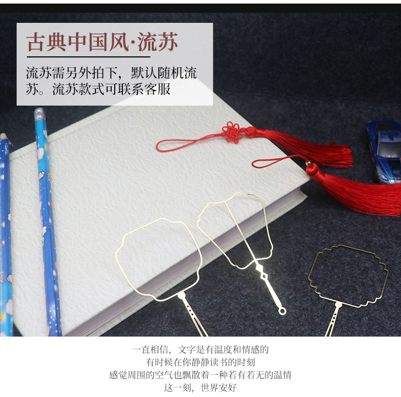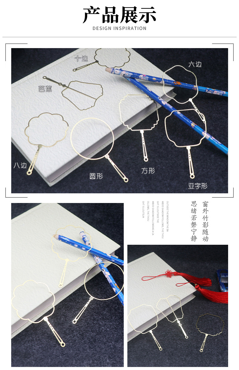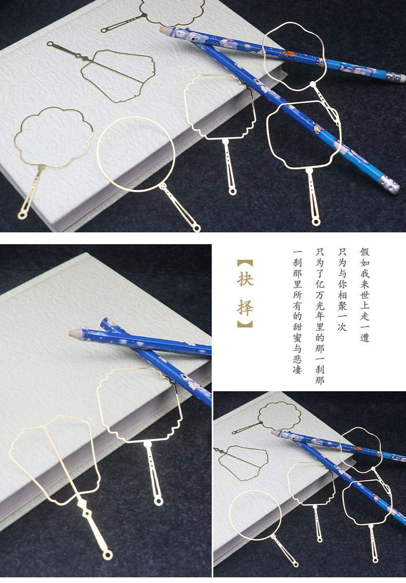 折りたたみ扇子ブックマーク、文化的で創造的なギフト、カスタムメイドの中国風卒業記念ギフト、卸売金属ブックマークセット