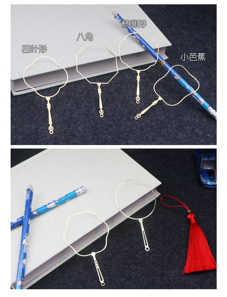 DIY素材 精巧な古典刺繍 真鍮扇骨 無地 クリエイティブギフト 金属扇骨外枠 ブックマーク