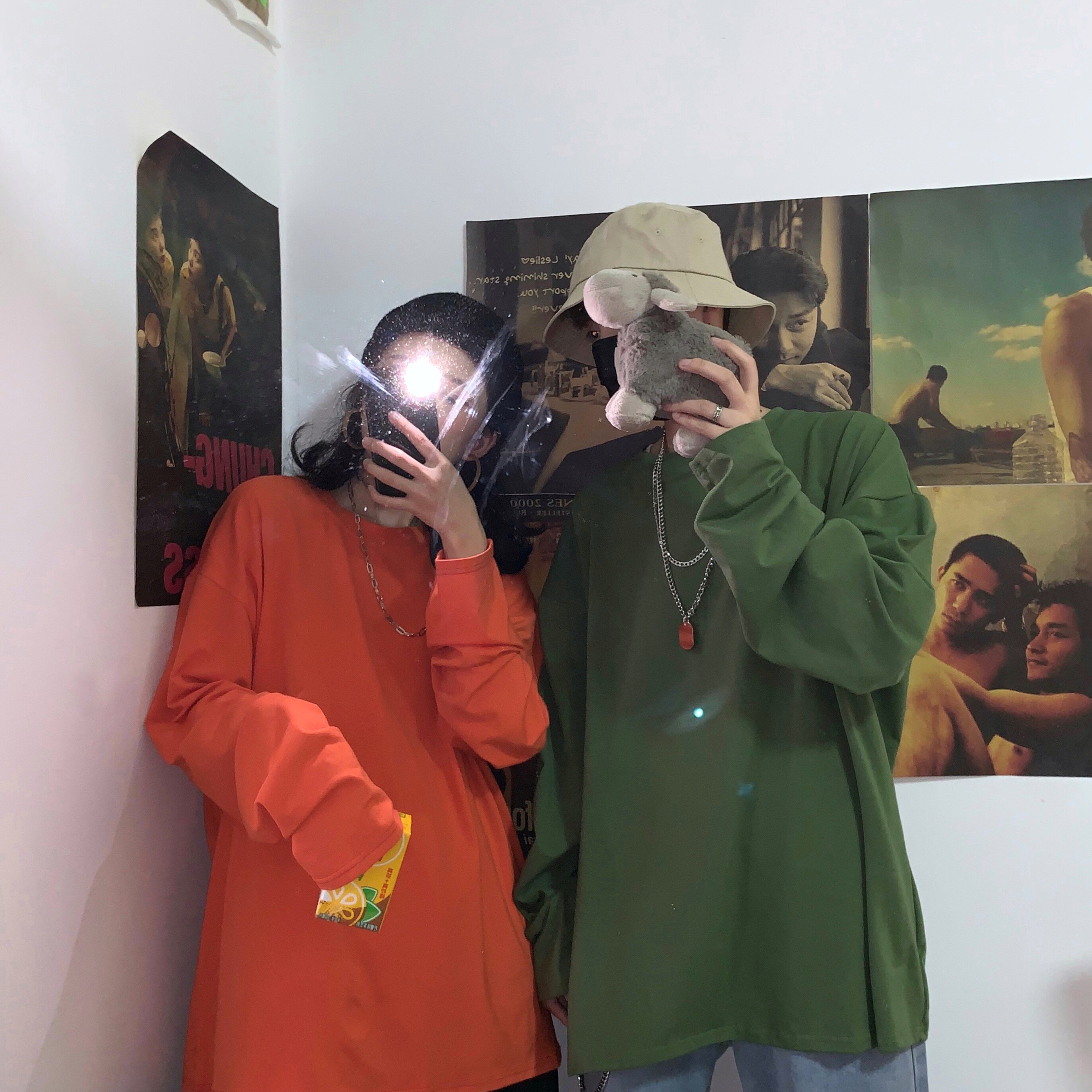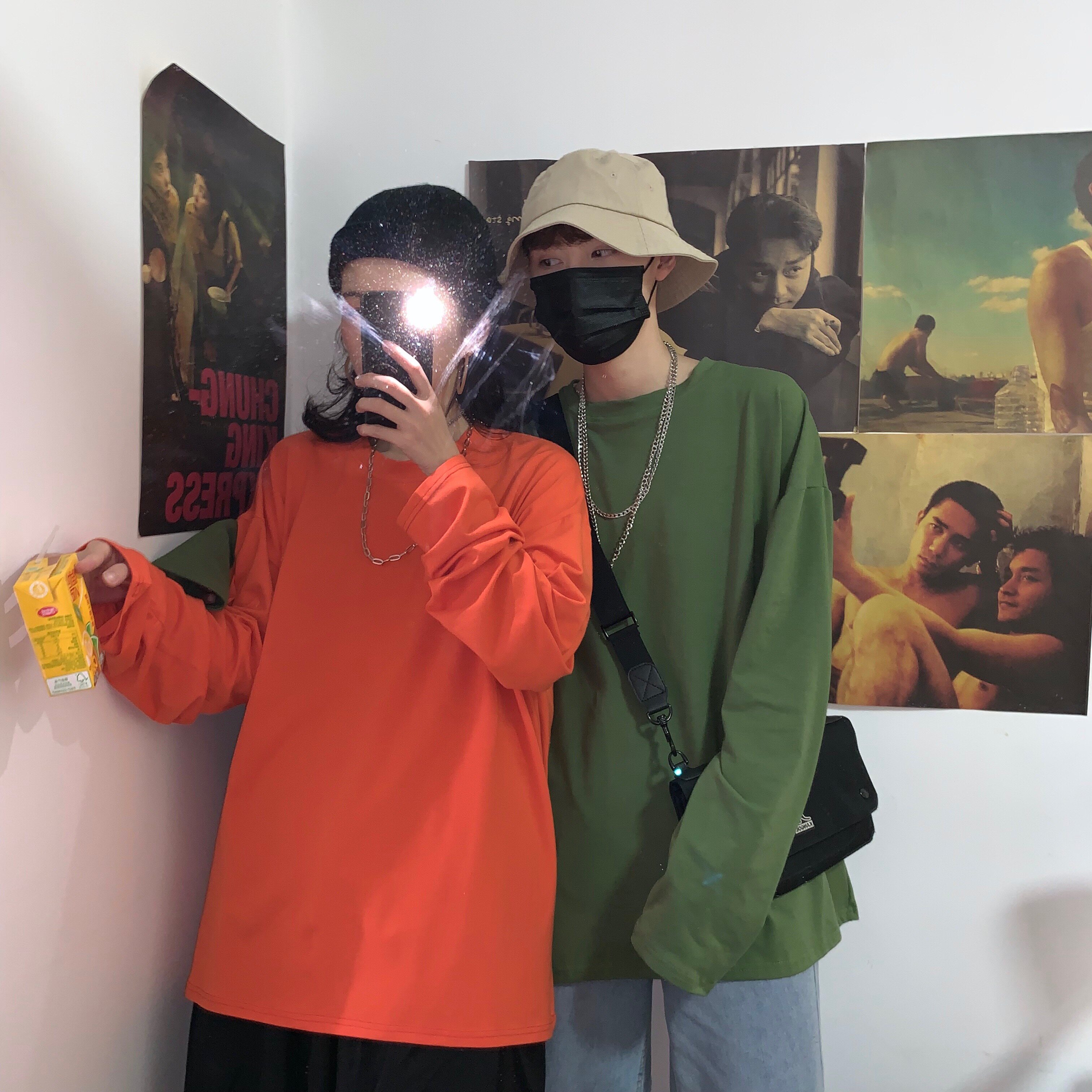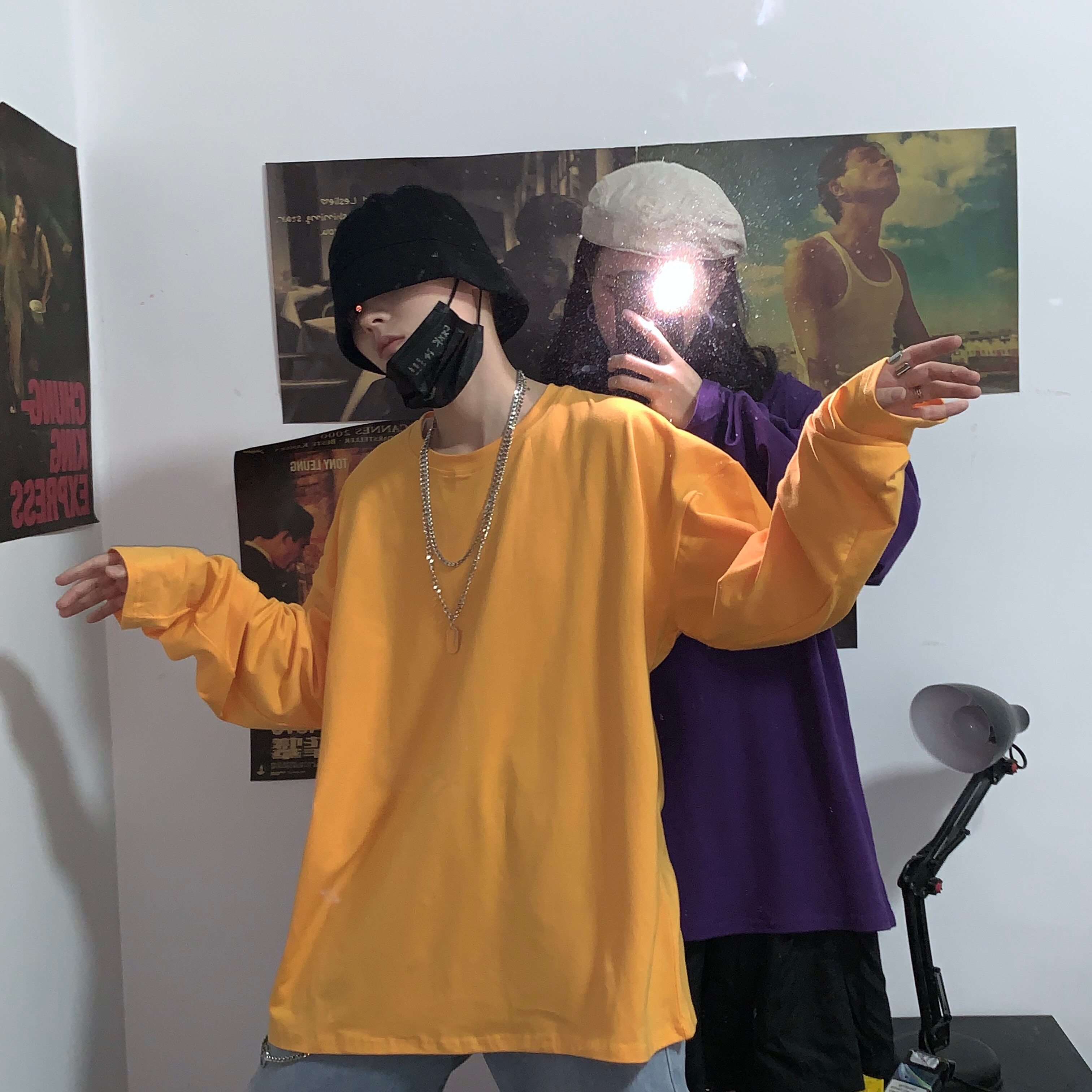 白いラウンドネック長袖,大きな赤いラウンドネック長袖,ダークパープルのラウンドネック長袖,ダークグレーのラウンドネック長袖,黒のラウンドネック長袖,黄色のラウンドネック長袖,クラインブルーのラウンドネック長袖,オレンジのラウンドネック長袖,アーミーグリーンのラウンドネック長袖