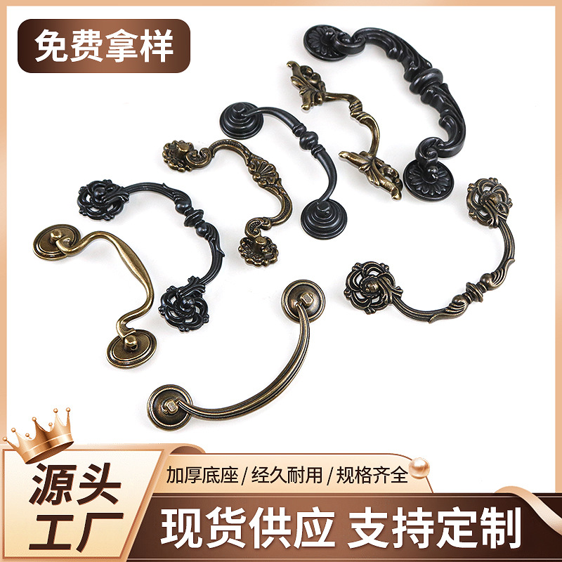 中式复古拉手欧式五金仿古大门把手锌合金抽屉柜门雕花双座拉手