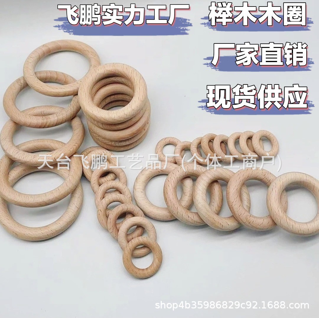 厂家供货25mm-70mm木质榉木木圈木圆环DIY婴幼儿磨牙玩具服装配饰