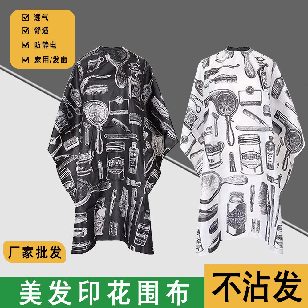 理发店围布个性化印刷图案成人理发披肩不沾发防静电围布现货批发