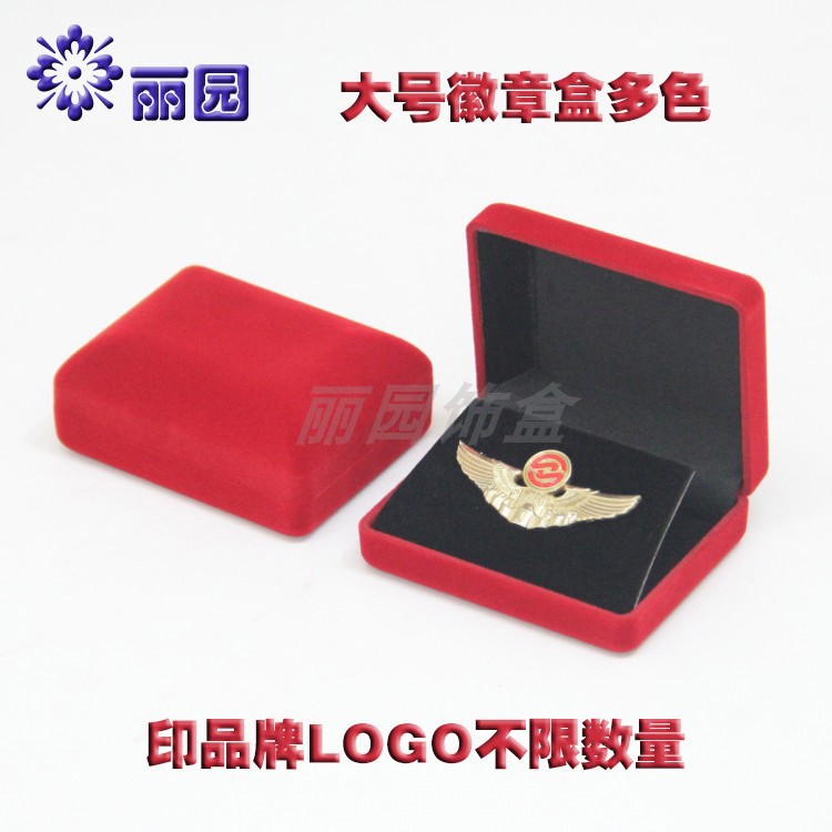 現物赤青黒紋章箱印ロゴブローチ勲章記念章包装箱メーカー卸売り植毛布箱