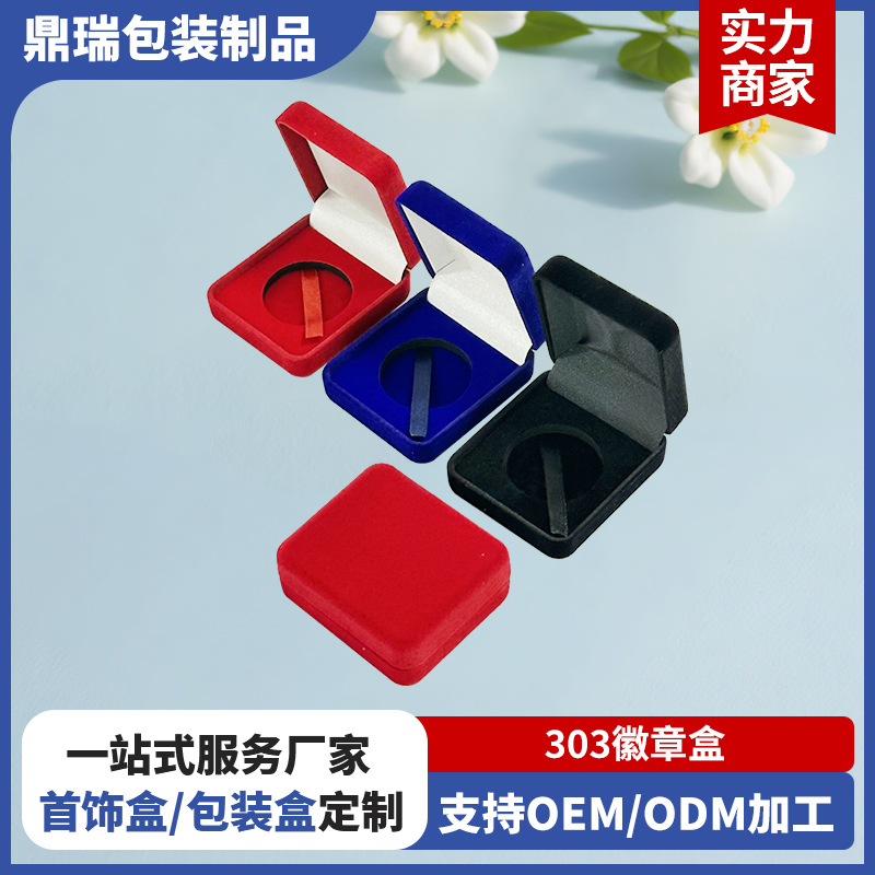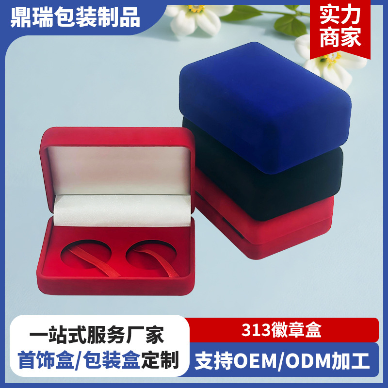 恵章箱カスタムロゴ赤青黒植毛布箱ブローチ胸章記念章券包装箱メーカー