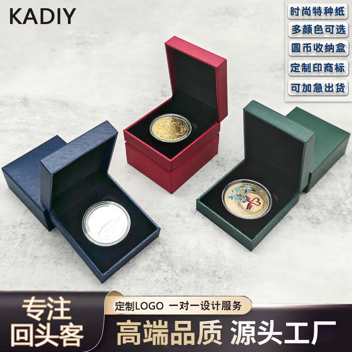 高級オーダー記念コイン箱ロゴ彫刻記念収蔵箱バッジ箱校章円コイン箱ビジネスコイン箱