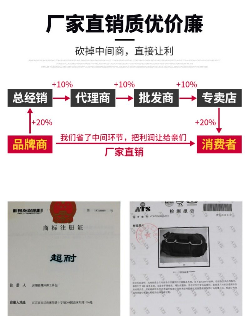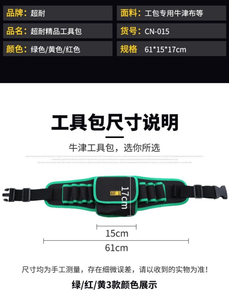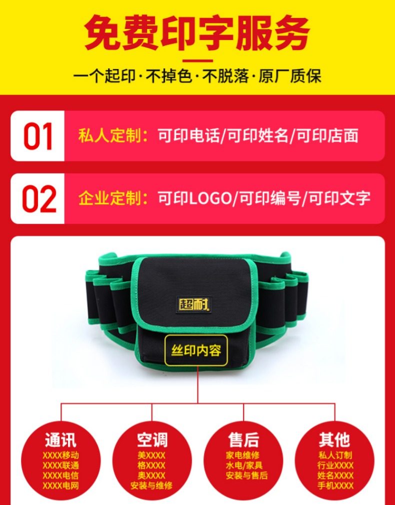 超耐電工のウエストバッグの小さい携帯多機能の厚いベルトの家電修理のウエストバッグのオックスフォード布の電気工のツールバッグ
