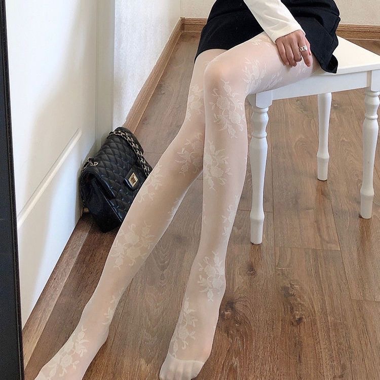 2024春秋タイプの日系ay刺繍ジャカードの白いバラのレトロな純粋な欲の甘いレースの一体のズボンのストッキング