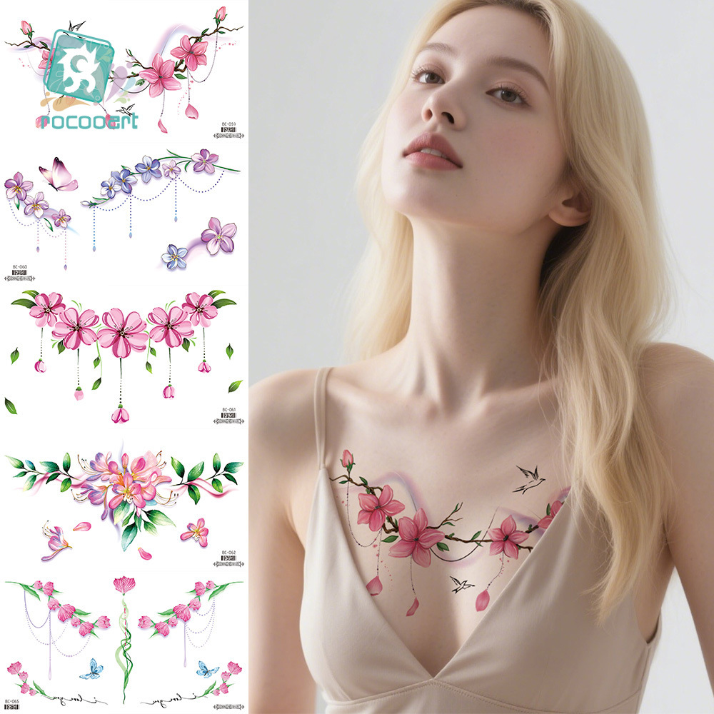 2025年RuiKalong新作クロスボーダー防水タトゥーステッカー、ドーパミンフラワーチェストボーンステッカー、パーソナライズされた花のポケット、美しい花