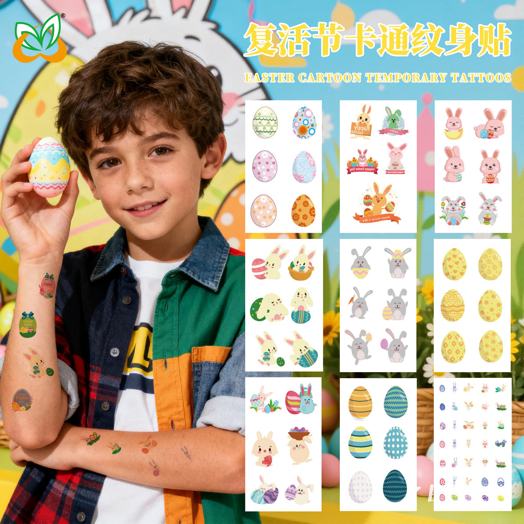 国境を越えた新しい子供漫画イースタータトゥーはパーティーの祝日のウサギの卵防水使い捨てシールを貼っている
