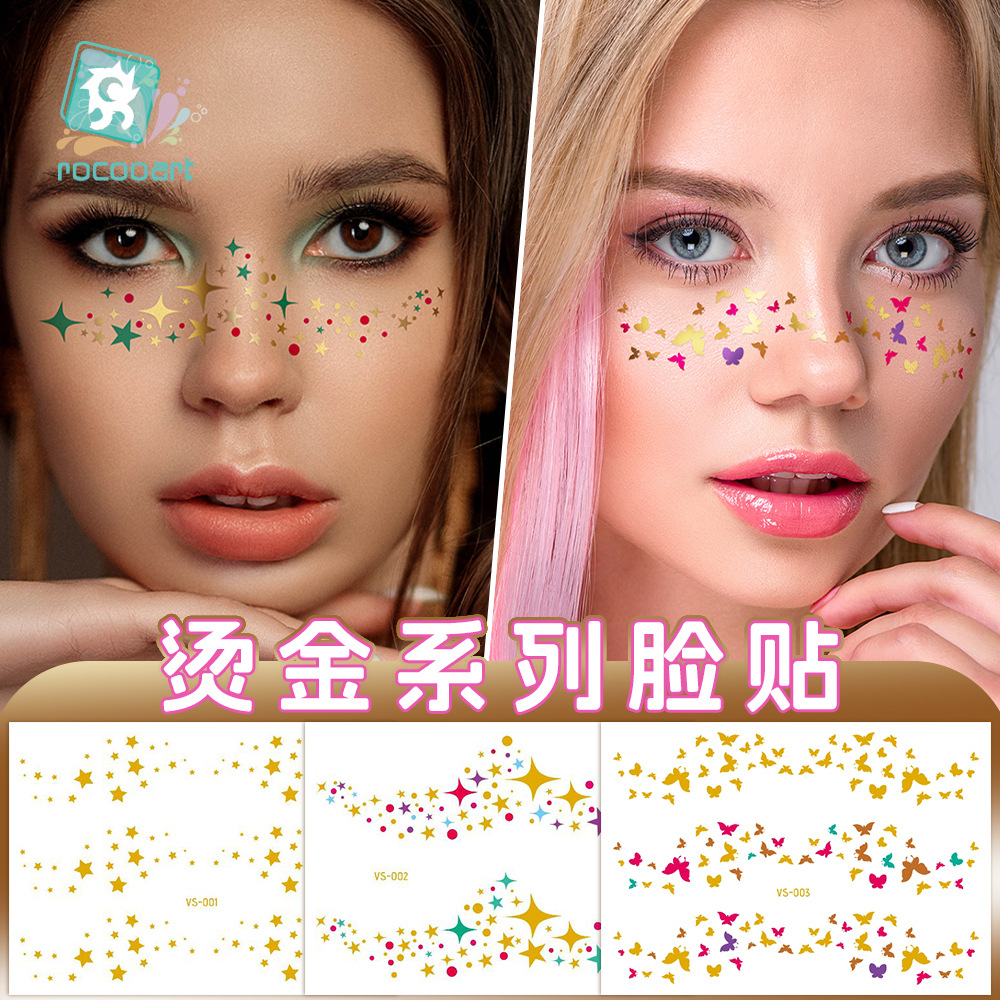 瑞卡龍色閃粉蝶紋身貼り高級感音楽祭メイク貼り六一王女顔貼りネット赤貼り