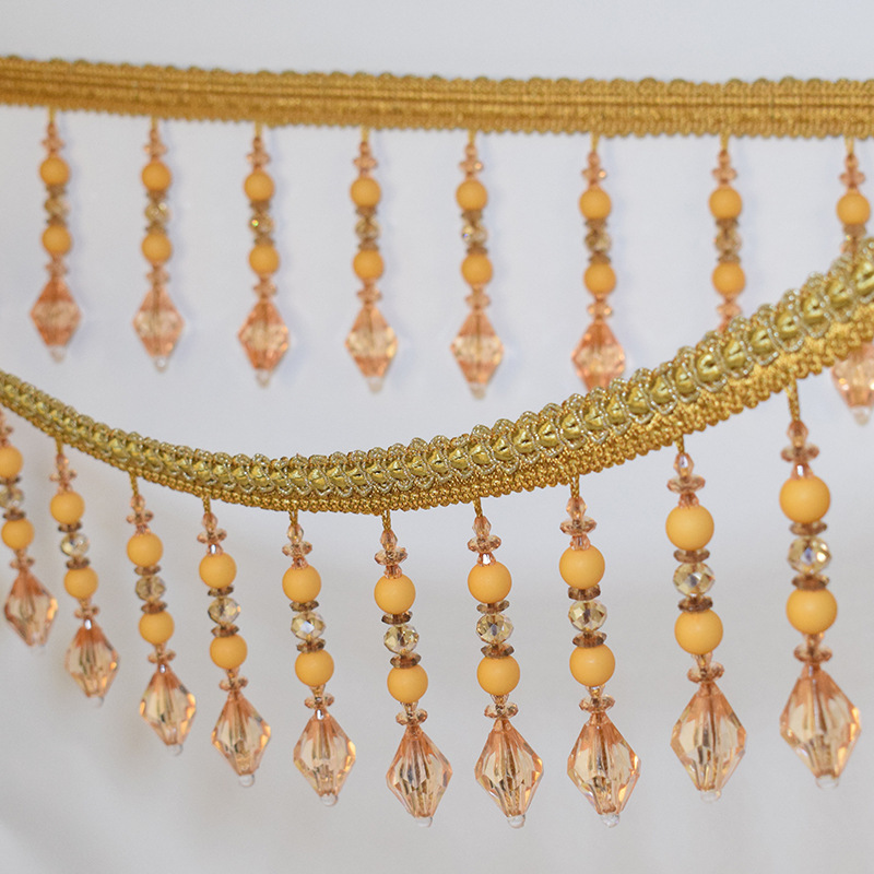 フリンジレース穂子カーテン補助材料レース卸売り新高級レース12メートル木珠吊り穂レース