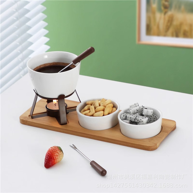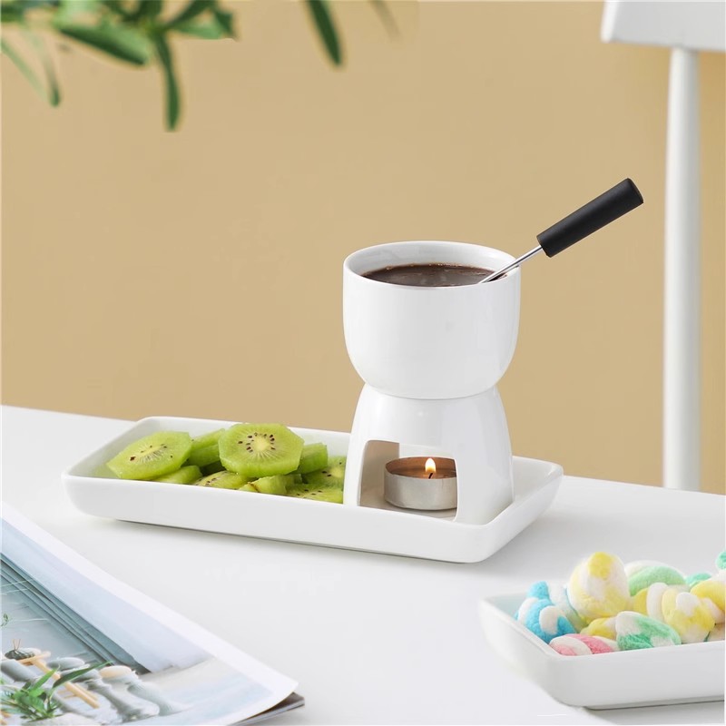 純白セラミックチョコレート鍋セット シンプルチーズアイスクリームフルーツ鍋 ベース付き鍋ギフトボックス