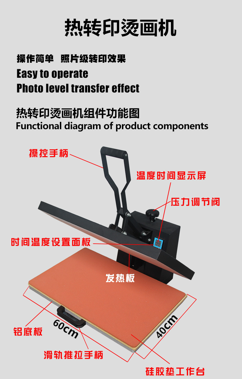 熱転写機 高圧アルミプレート 40x60 熱プレス機 衣類ラベル ロゴ スライドレール 熱昇華熱プレス機